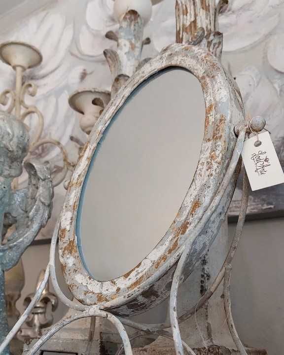 in legno verniciato e naturale in stile Shabby, specchi per interni con cornici in legno e ferro battuto.